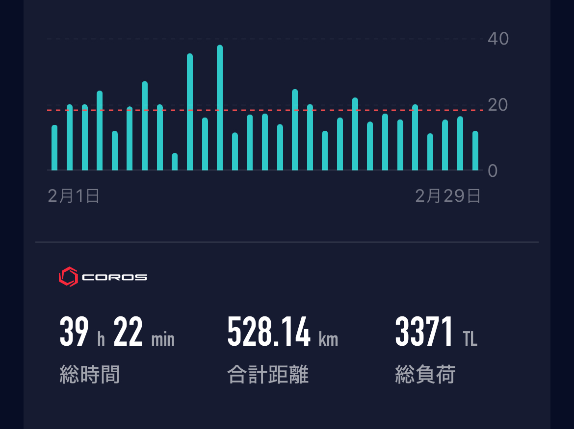2月の月間走行距離は528km。