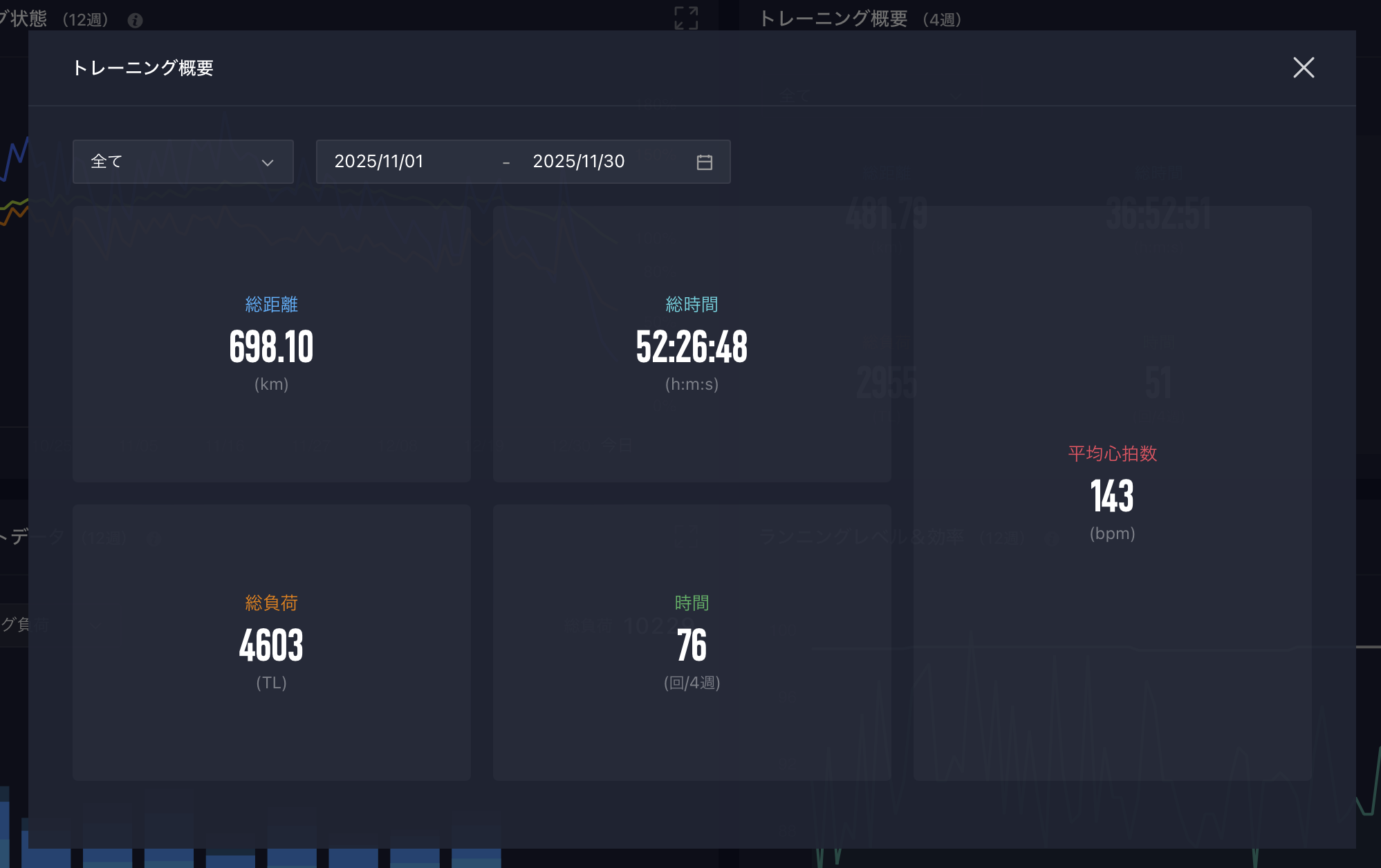 【マラソン2時間15分】2025年11月のトレーニング日誌【5000m14分00秒】