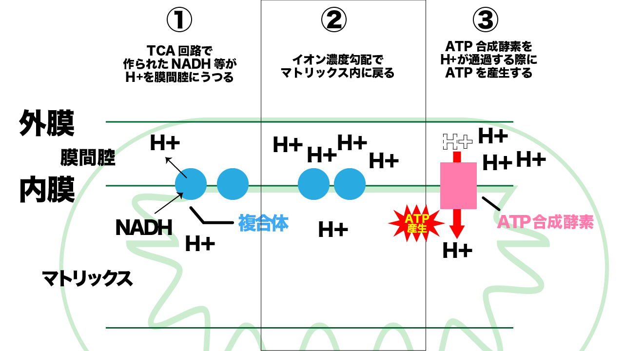 元に戻るときに「ATP合成酵素」を通るのですが、