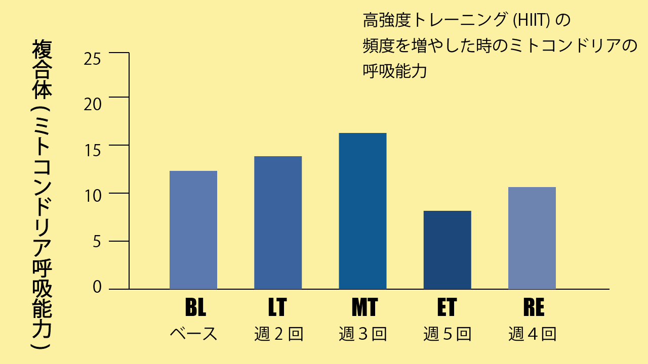 刺激時間が短くても強度が高ければミトコンドリアの機能は高まります。