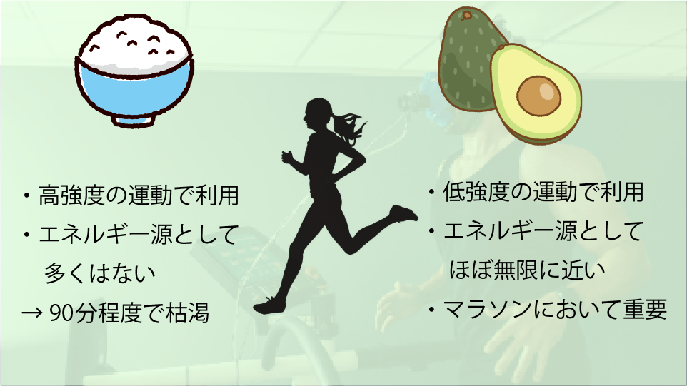 一般的に、ゆっくりとしたジョギングでは脂肪をメインで利用して