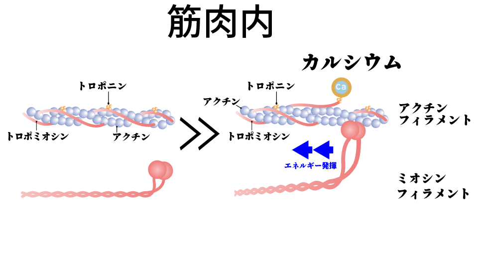 カルシウムはトロポニンと結合し、トロポミオシンを移動させます。