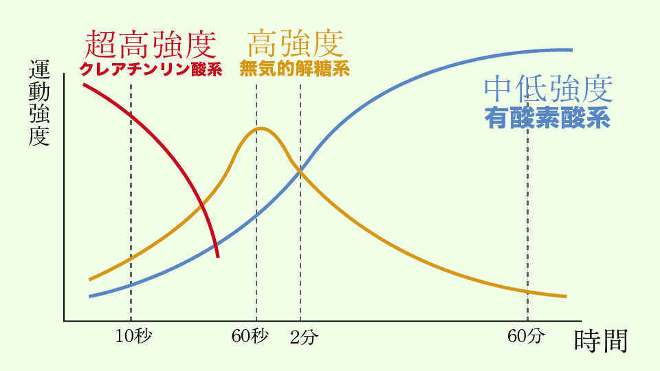 この時間でできる運動強度は「解糖系」と呼ばれる