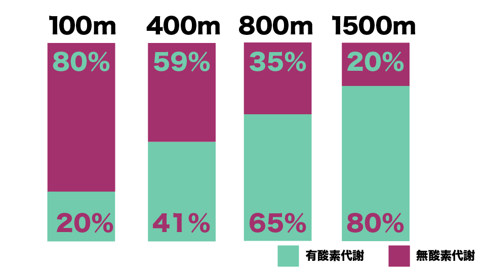 1500m走ではこの無気的代謝能力の割合は20%を占めます。