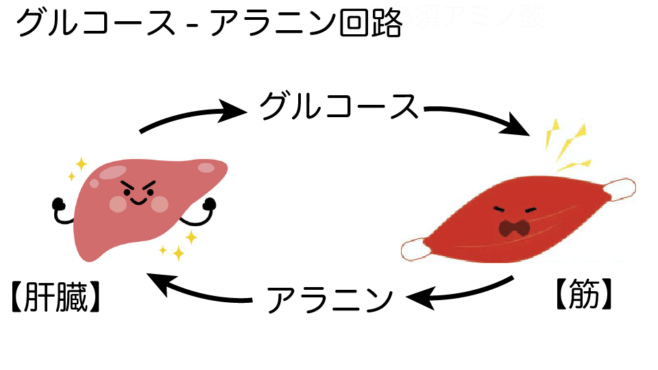 アミノ酸の利用は、グルコースーアラニン回路という代謝で利用されています。