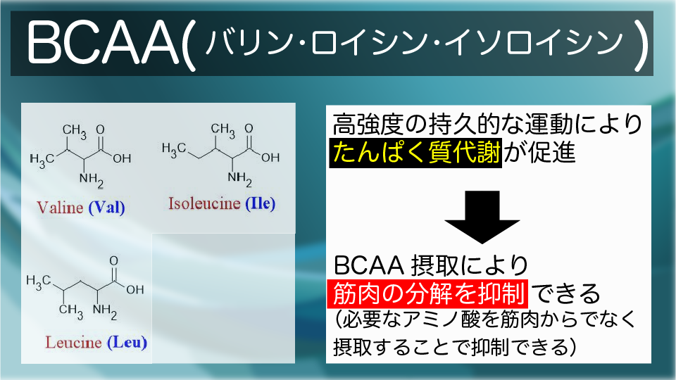 BCAA=バリン・ロイシン・イソロイシンの3つのアミノ酸のこと