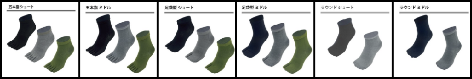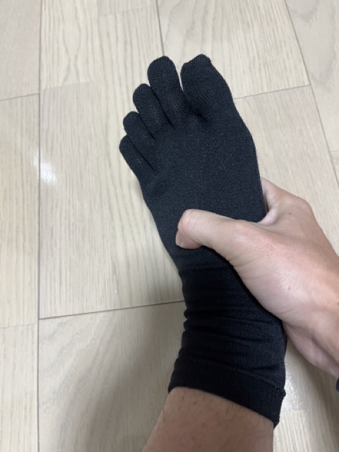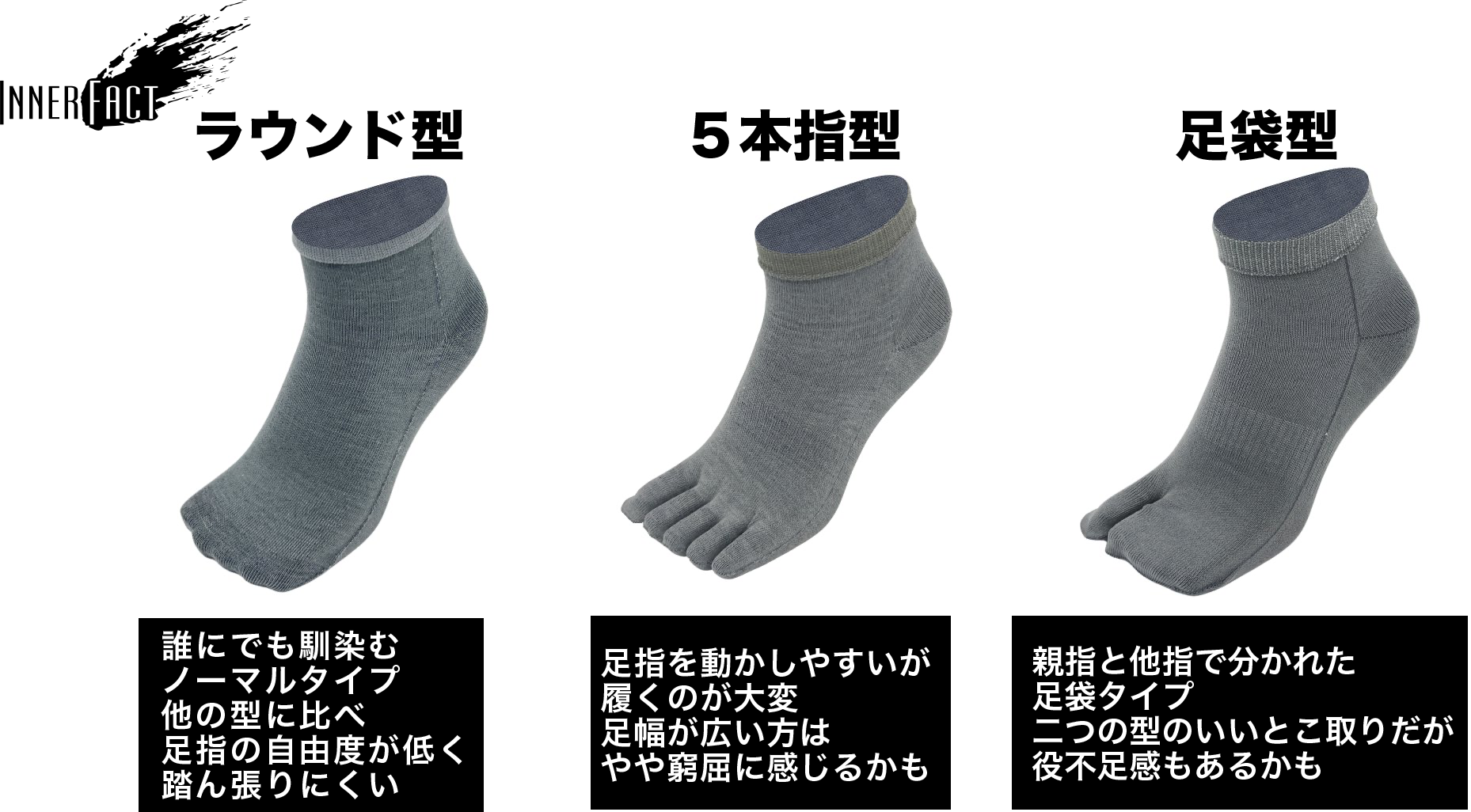 足袋型:ラウンド型より力を入れやすく、5本指ほど履くのが大変ではない
