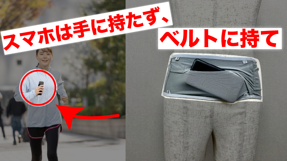 スマホは手に持たずベルトに収納する