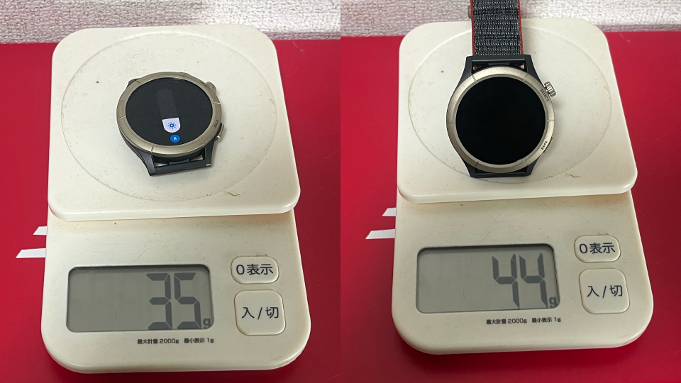 | 重量 | 44g(バンド含む)/35g(バンド除く) | 47g(バンド含む)/32g(バンド除く) |