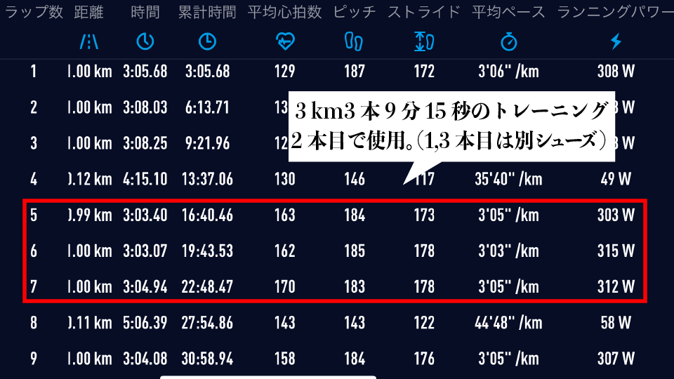 今回は3kmのロングインターバルで使用、