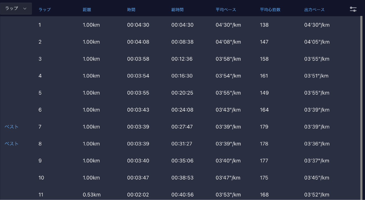 この日のジョグの結果は下記の通り。
