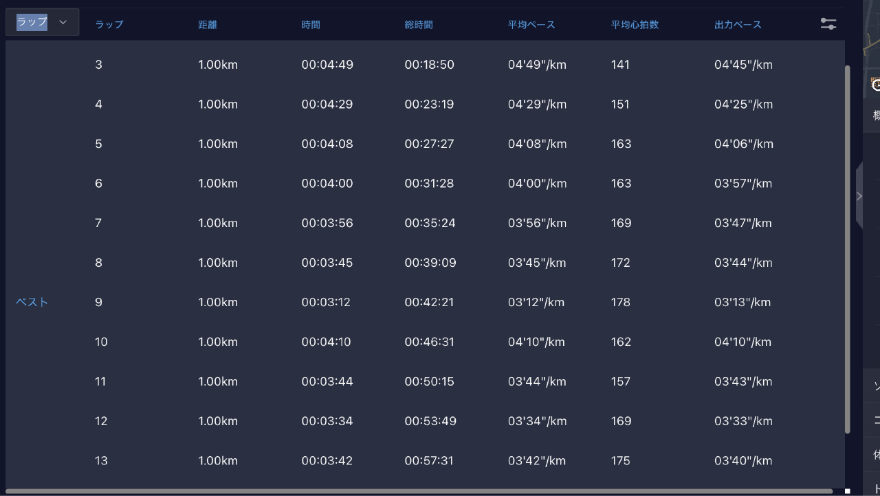 体感-10秒/km程度の感覚で走れました