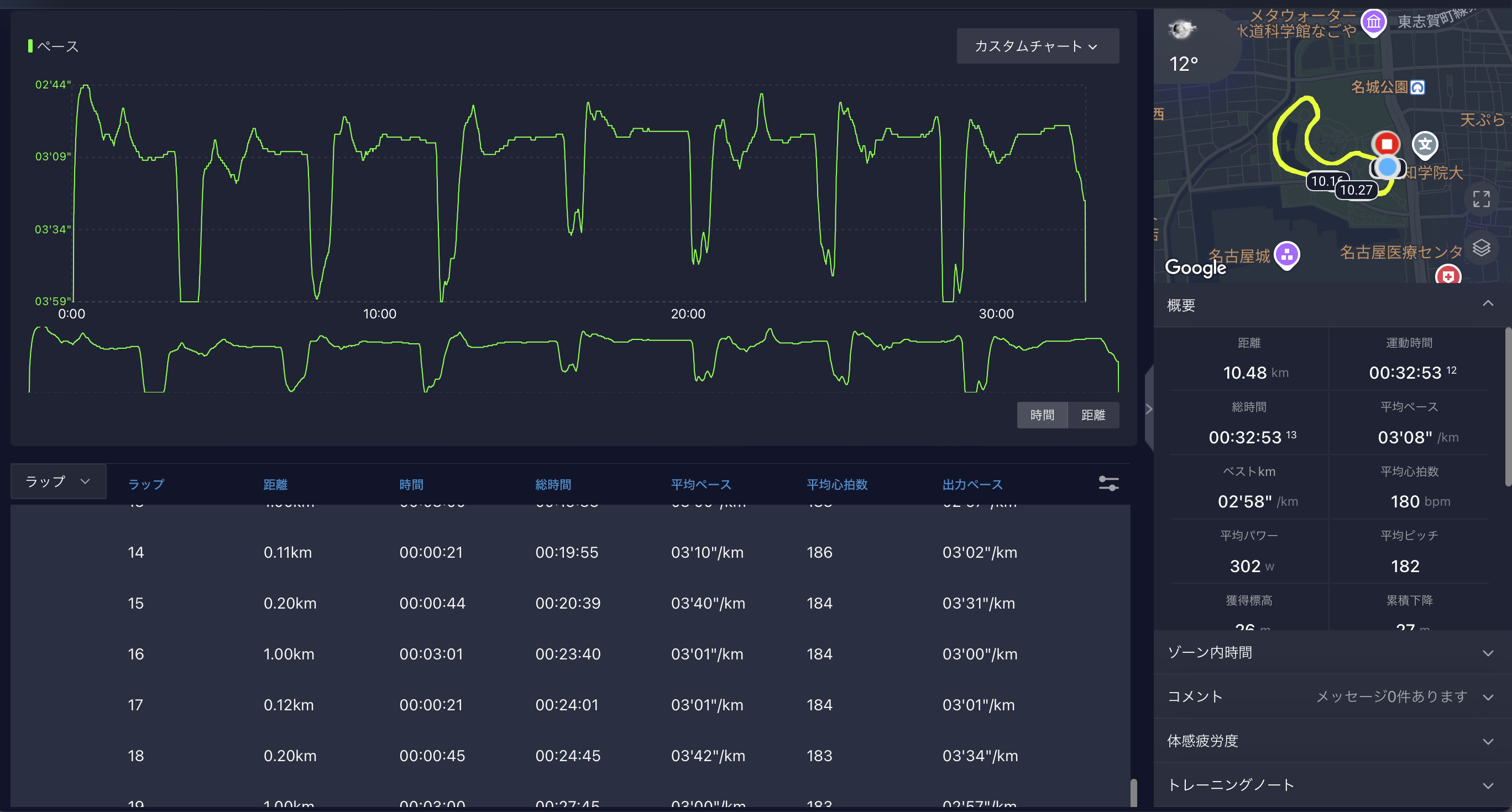 実際にこのシューズの想定使用速度帯でのトレーニングとなる。