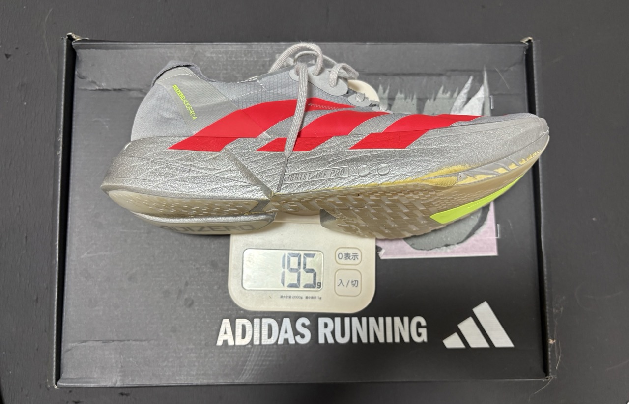 アンダー200gでレーシングシューズとしては軽量と呼べる。