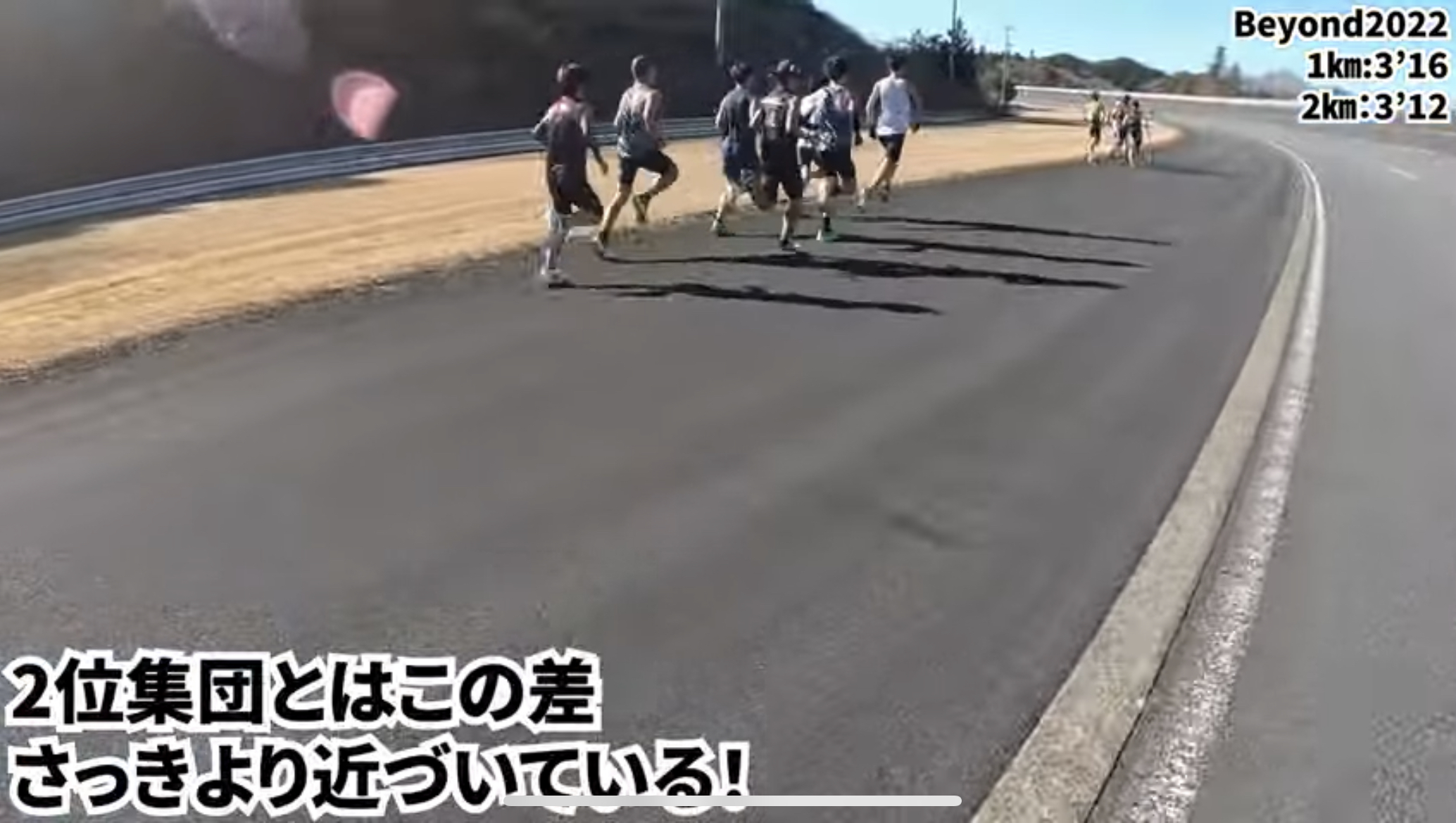 第2集団(入れ替わったのでここが先頭集団)のペースが落ち着き始めます。