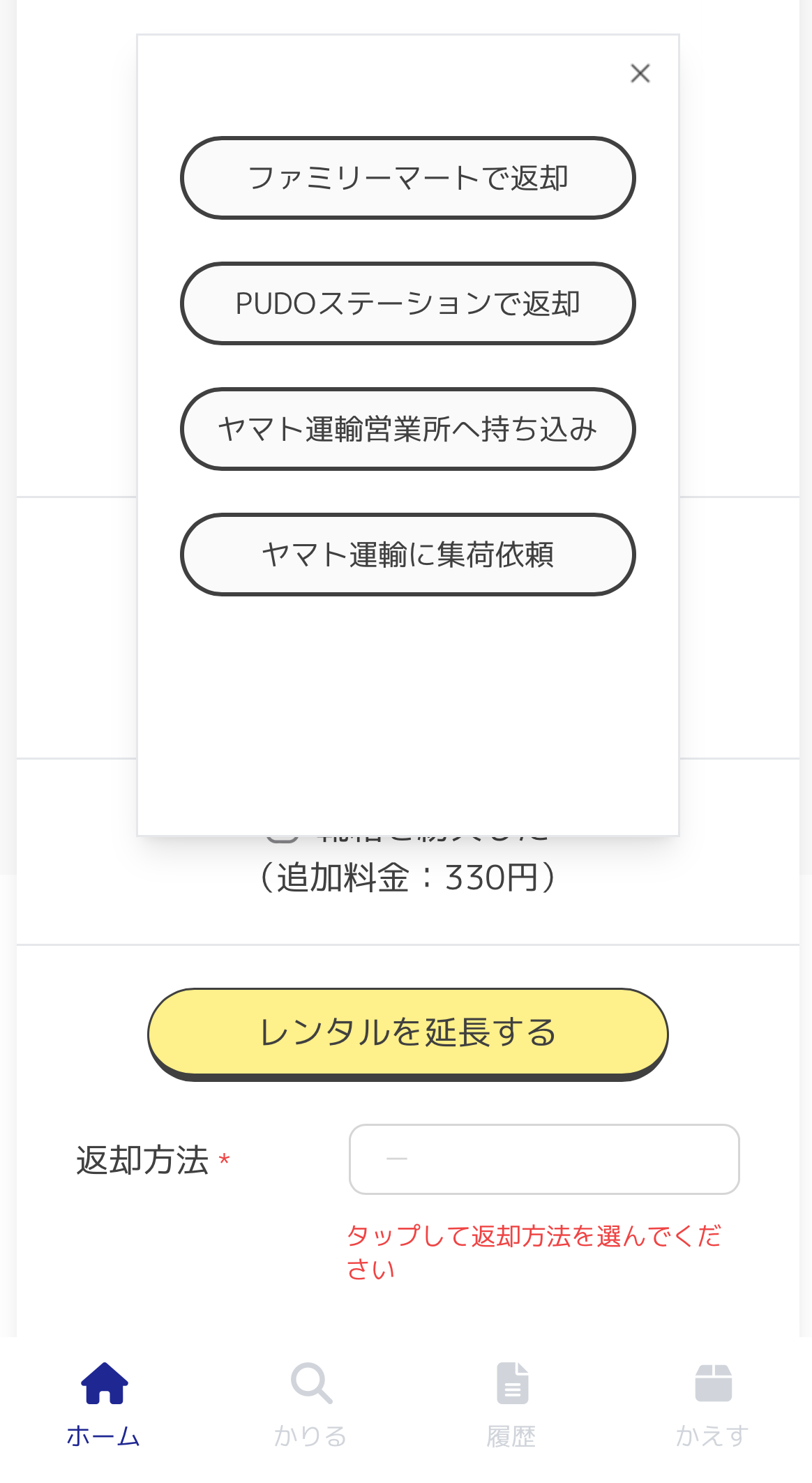 自分で送り状を書いて返すなどの手間もなく簡単に返却可能。